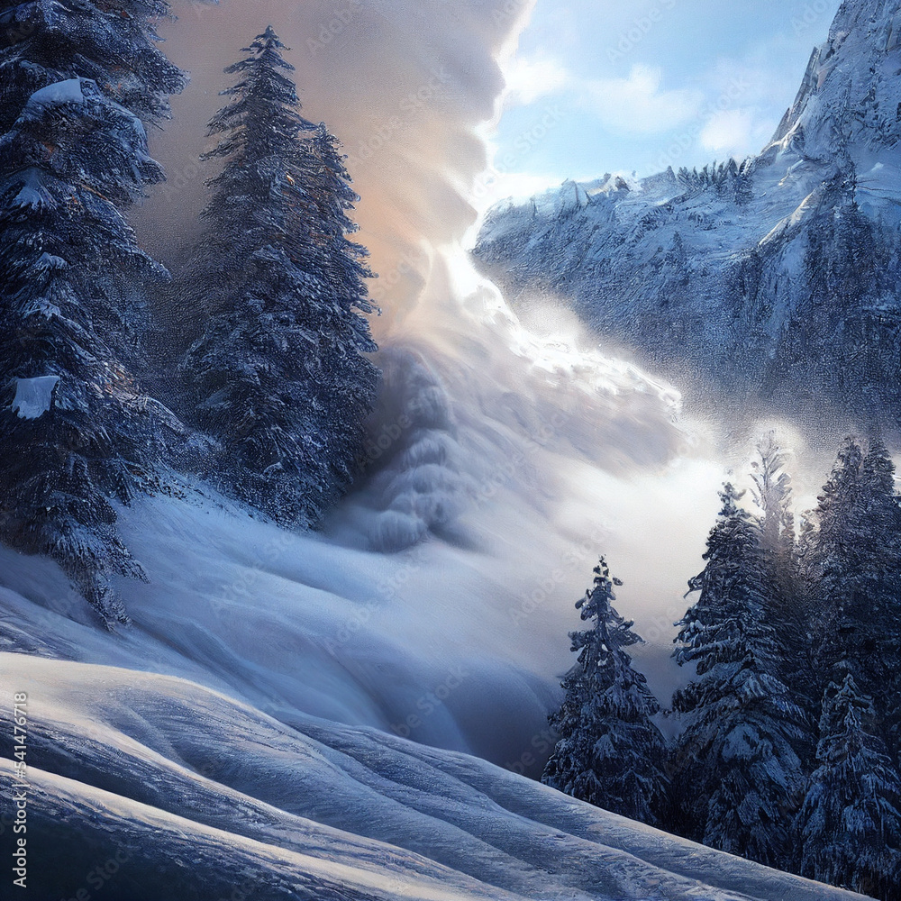 Winter landscape avalanche, digital illustration