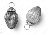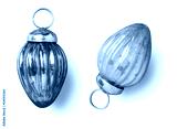 two pastel colored vintage style Christmas ornaments / baubles, isolated, top view / flat lay with subtle shadows