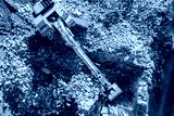 demolition old building with excavator, aerial view