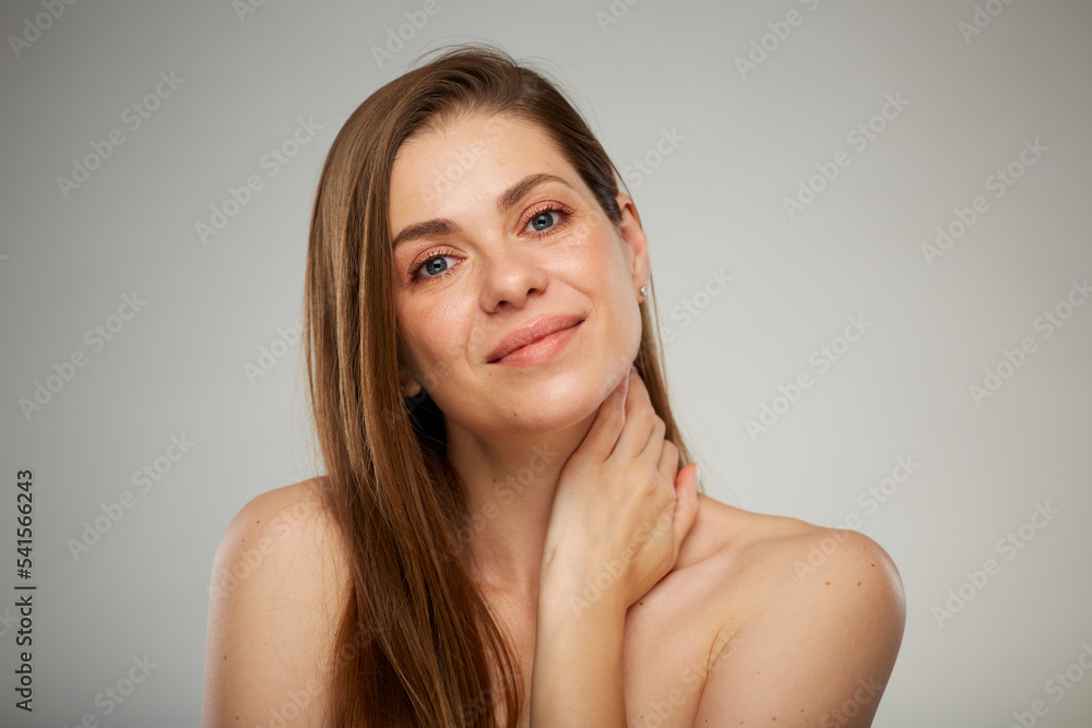 Beauty portrait of smiling woman. Isolated studio advertising portrait.