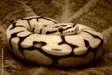 Ball Python Morph is the most popular pet snake. Baby Ball Python Morph on dry leaf.