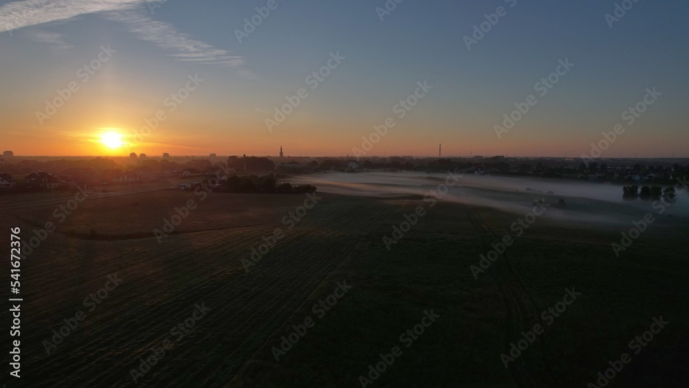 Podmiejskie mgły o poranku