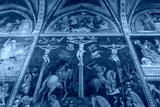 San Gimignano, Italy, 15 April 2022: Beautiful frescoes in the medieval cathedral