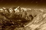 Beautiful valley of the Arpy Lake in front of the Mont Blanc, Italy