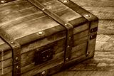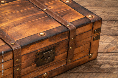 retro decorative case or storage box on wooden rustic table