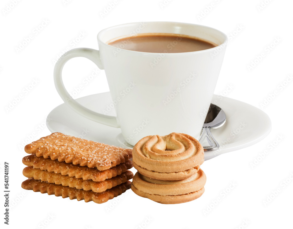 cup of coffee and cookies isolated and save as to PNG file