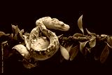 Green Tree Python (Morelia viridis) on tree branch. This Green Tree Python is a rare species from Papua, Indonesia.