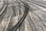 Background with tire marks on road track, Car track asphalt pavement background at the circuit, Abstract asphalt road background with crossing of tires tracks, Black tyre mark on asphalt road.