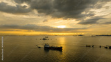 oil tanker ship sailing in sea and the sunset background aerial view photograph from drone,