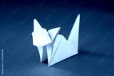 White paper cat origami isolated on a grey background