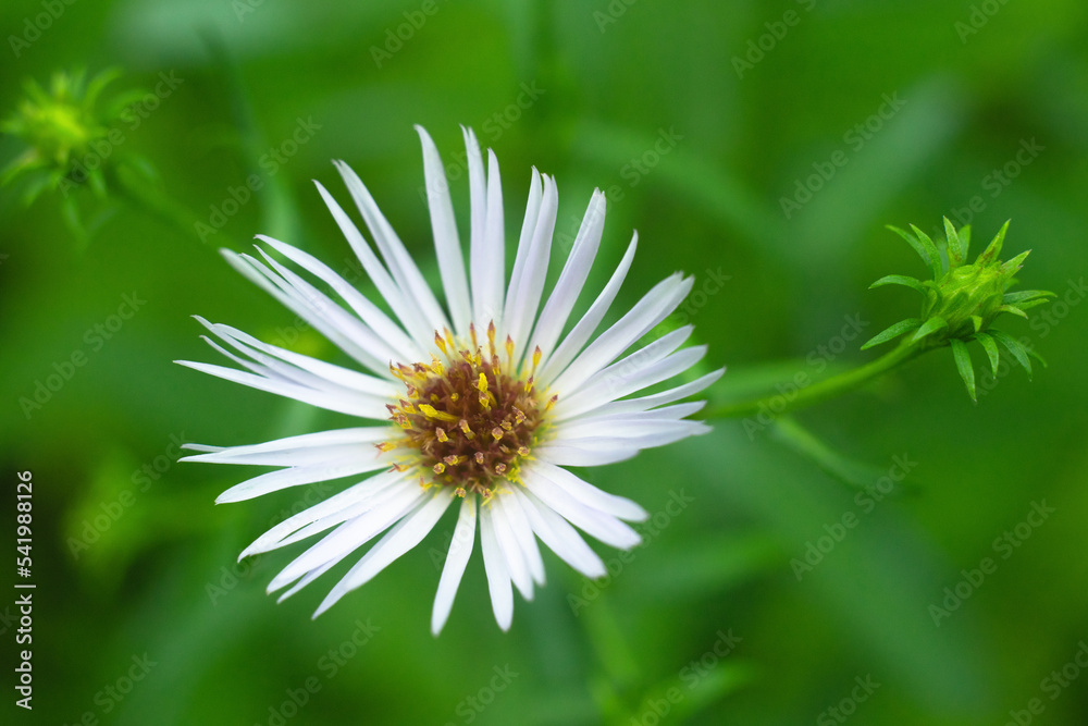 The flower of the aster garden plant.Flowers of September. Aster is a perennial stunted on a green background.