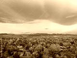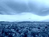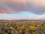 October dawn over Fort Collins and foothills of Rocky Mountains in northern Colorado, aerial view