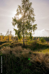 Samotne drzewo w jesiennych barwach. Jesienny krajobraz.