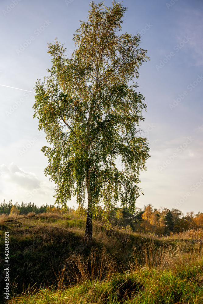 Samotne drzewo w jesiennych barwach. Jesienny krajobraz.