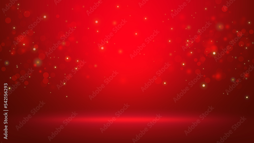 Empty dark red room with gradient red background and Abstract bokeh lights effect background. Christmas, valentine's day, new year concept