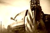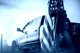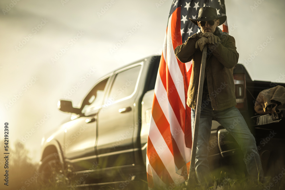 American Patriot Cowboy Farmer Staying in Front of His Pickup Truck