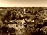 First Parish Congregational Church and York Town Hall on York Street in historic town center of York village, Maine ME, USA.