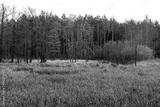 Bagienny krajobraz dzikiej puszczy, jesień, las