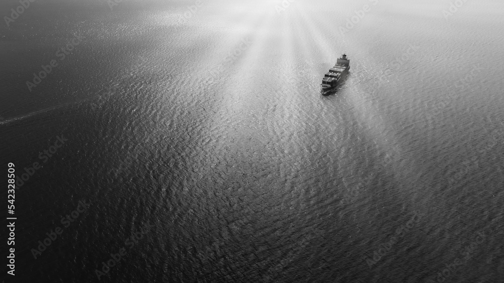 black and white cargo container ship full speed sailing in sea import and export business and industry logistic goods transportation of international by container ship in ocean fright