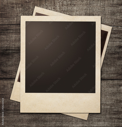 polaroid photo frames on wooden grunge background