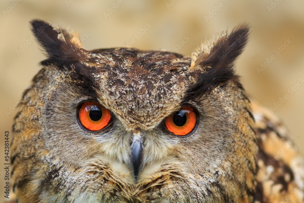 Eurasian eagle-owl (Bubo bubo) frontal portrait close up