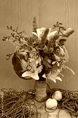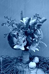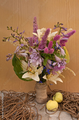 still life hemerocallis and astilbe with rope and apples