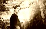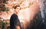 Portrait of a young feminist confident woman with a short haircut in a black t-shirt and trousers against the background of a brick building, non-binary personality feminism and female power concept