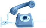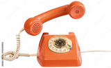 Vintage orange telephone with handset lifted, isolated