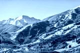 Aspen, Colorado buttermilk ski resort town slopes hill in Rocky mountains view on sunny day with winter snow on yellow foliage autumn trees