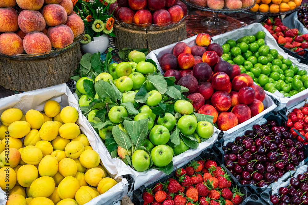 Green Market in Baku. Fresh fruit and vegetables at a traditional food bazaar. Baku, Azerbaijan.