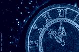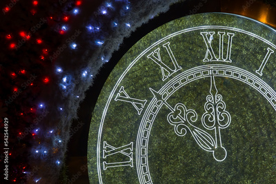 Big Christmas New Year clock in the city park. Background festive decoration for the new year