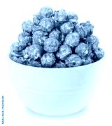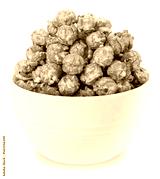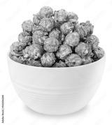 Caramel Popcorn in white bowl isolated on white background, Mushroom Popcorn on white With work path.