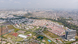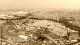 Image of Puebla, Mexico during sunrise. Panoramic aerial view of the cities of Puebla and Angelopolis.