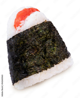Japanese rice ball with fish roe Mentaiko isolated on white background, Onigiri or rice ball on white With work path, Japanese tradition food.