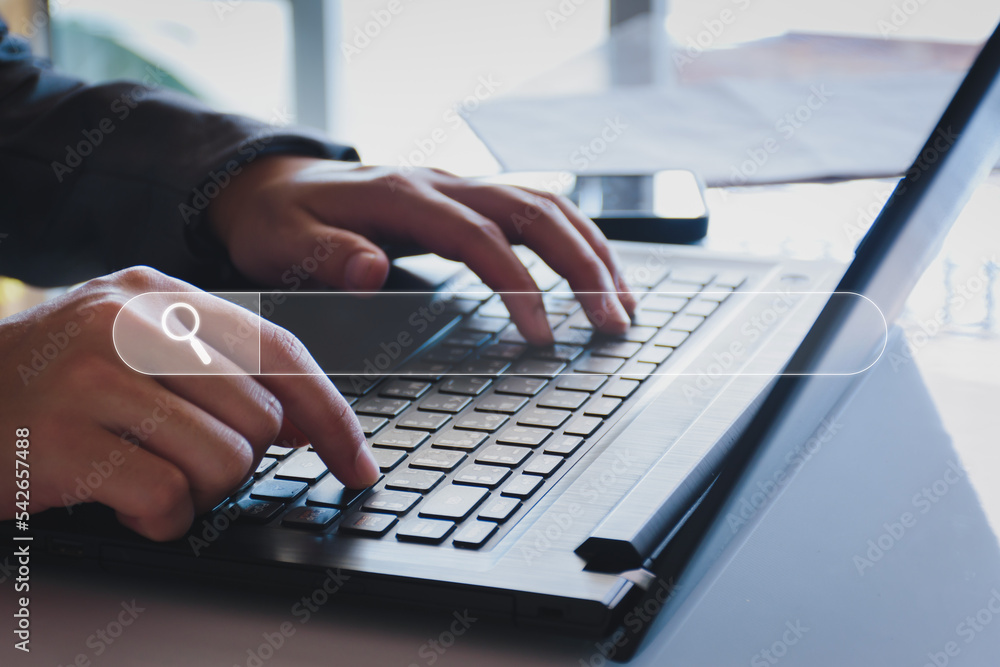 Data Search Technology Search Engine Optimization. Business people are searching for information in digital databases, search jobs, apply online jobs, manage big data bases, business information.