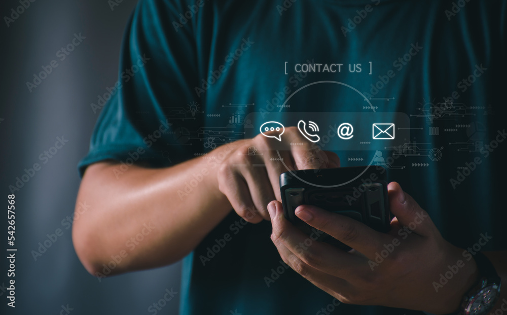 Contact us concept. Business man consulting customers who contact us, call center service, customer consulting service, email, hotline, business contact, digital online business, digital service.
