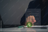 Business approved concept. Manager hand stamping with approved stamp on certificate document public paper, investment certificate, business document, certificate approved, investment allowed.