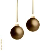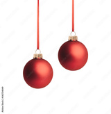Zwei rote Weihnachtskugeln mit Rotem Band und Schleife