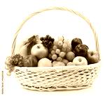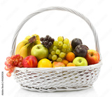 Assortment of exotic fruits in basket isolated on white