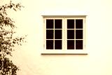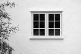 House exterior with wooden window and white wall rendering, UK