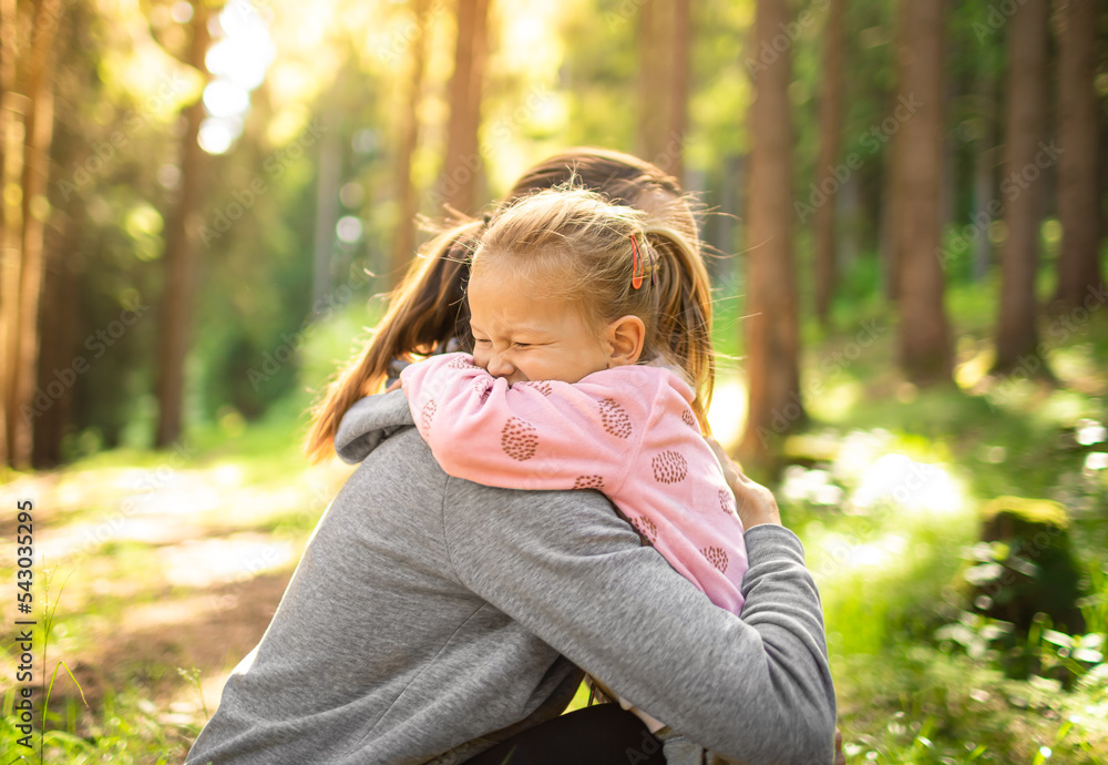Little girl giving mother a big hug. Family lifestyle relationships and giving love and affection.