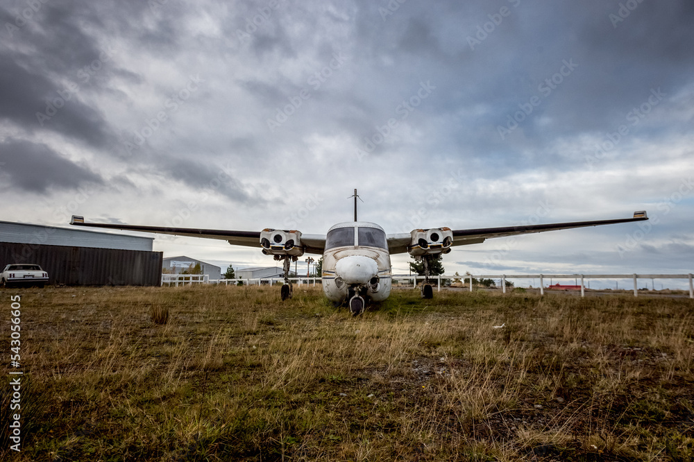 Old plane at the airfield in Chile South America. Castro capital of the island of Chiloe