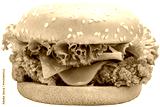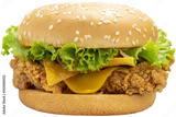 Chicken Hamburger with cheese, tomato, onion, lettuce and ketchup mustard isolated on white background, Hamburger on white PNG file.