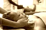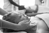 Relax, luxury massage and senior couple together in hotel spa or salon for romantic anniversary weekend. Health, wellness and romance, massage therapy for mature black woman and man in retirement.