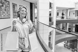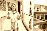 Portrait of pretty smiling Caucasian woman with shopping bags and cup of coffee. Happy young beautiful woman drinking take away coffee and walking with bags after shopping in the Mall...