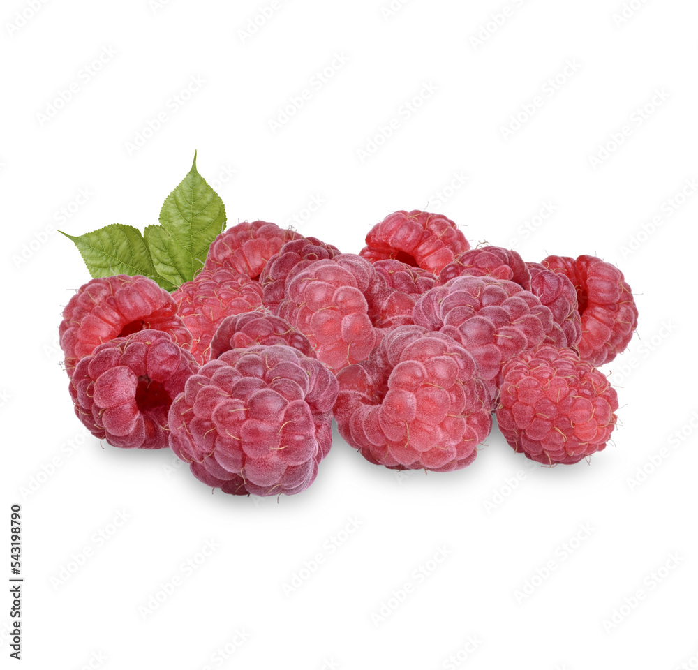 Fresh raspberry with leaves isolated on transparent background (.PNG)