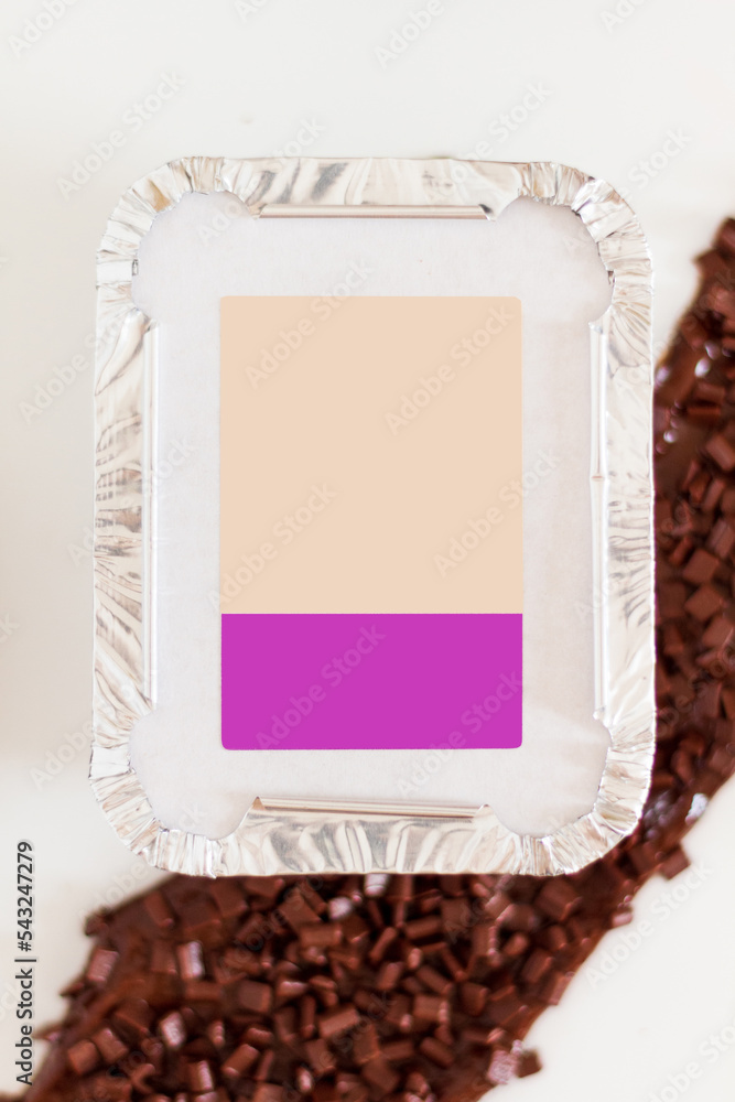 Delivery package on white background. Chocolate flavor composition. Modern candy shop concept.