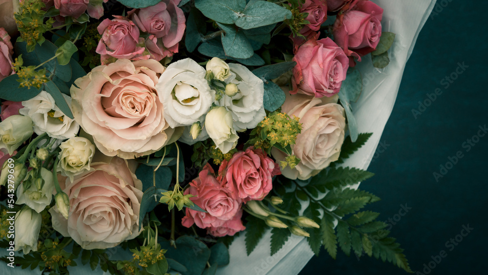 Bouquet de fleurs dans les tons pastels avec son papier d'emballage