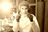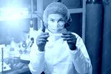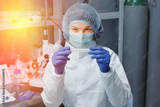 Medical worker or Scientist in a medical research laboratory holds a test tube.