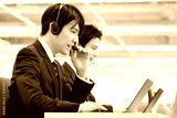 ヘッドセットをつけたビジネスマン(オンライン会議・コールセンター)